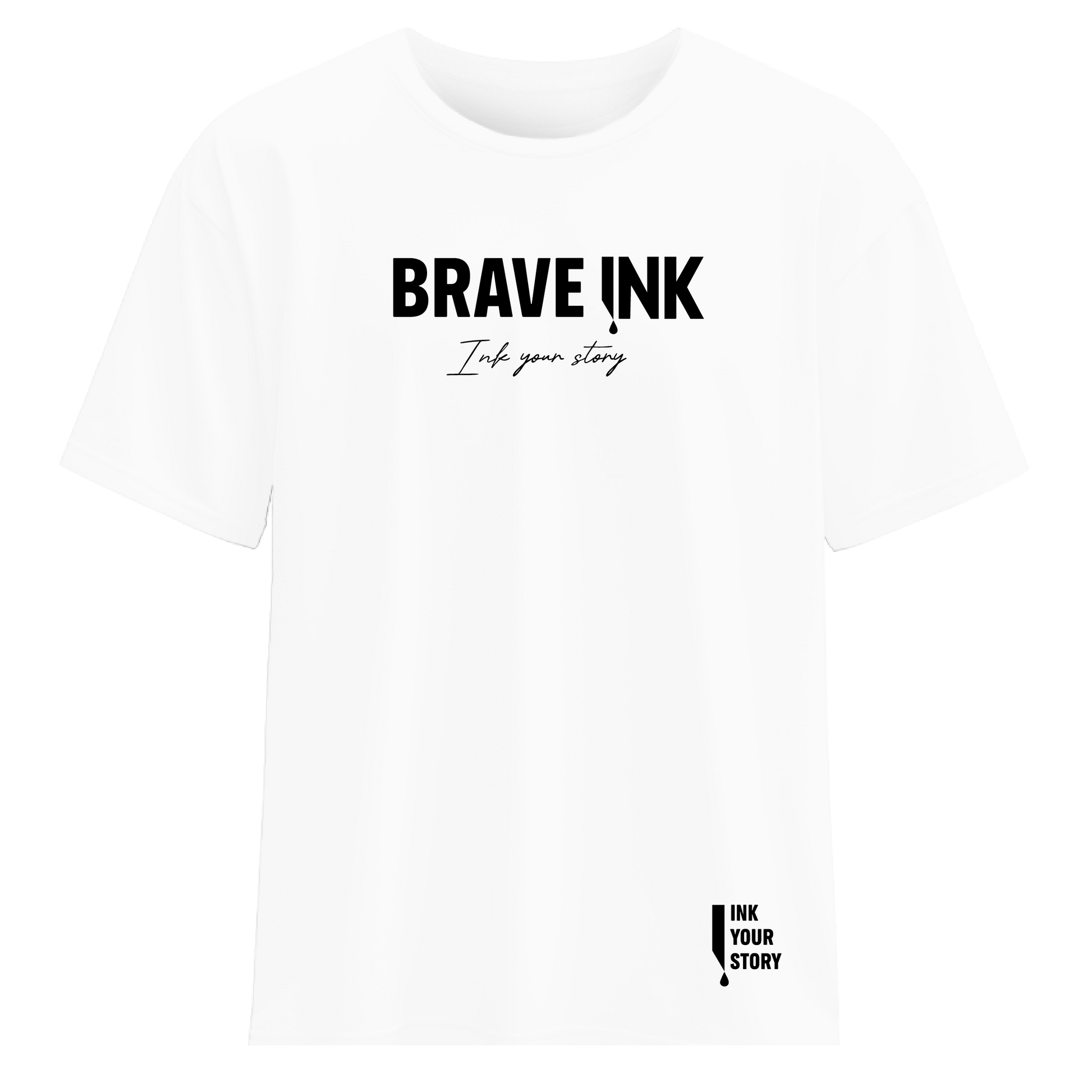 The “Brave Ink – Ink Your Story” T-shirt is more than just clothing; it’s a statement of self-expression and courage.